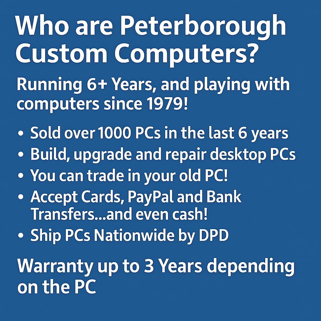 PC SALES AND REPAIRS + CUSTOM BUILDS & UPGRADES. 01733 855054